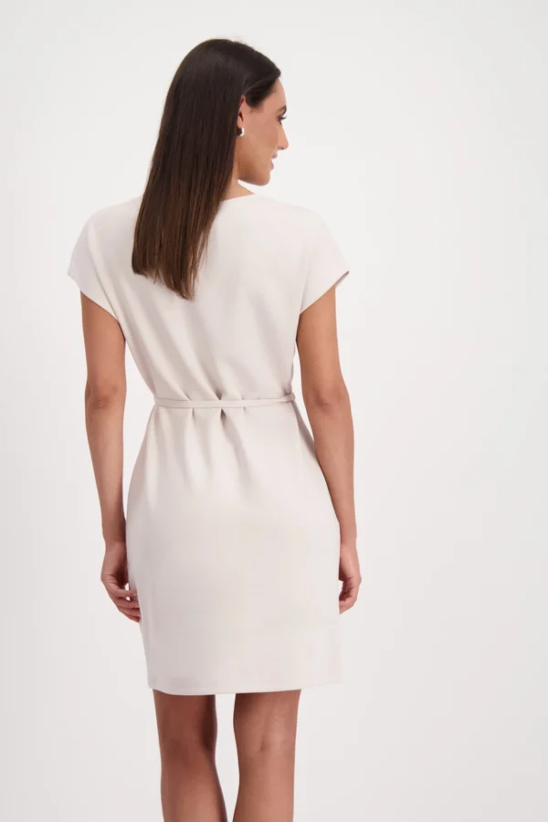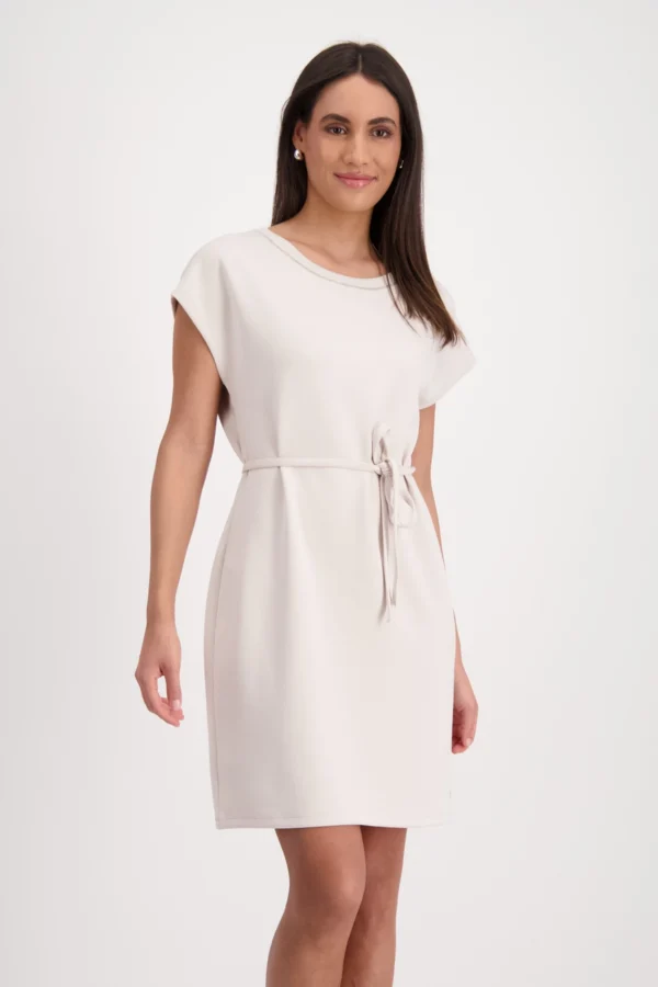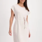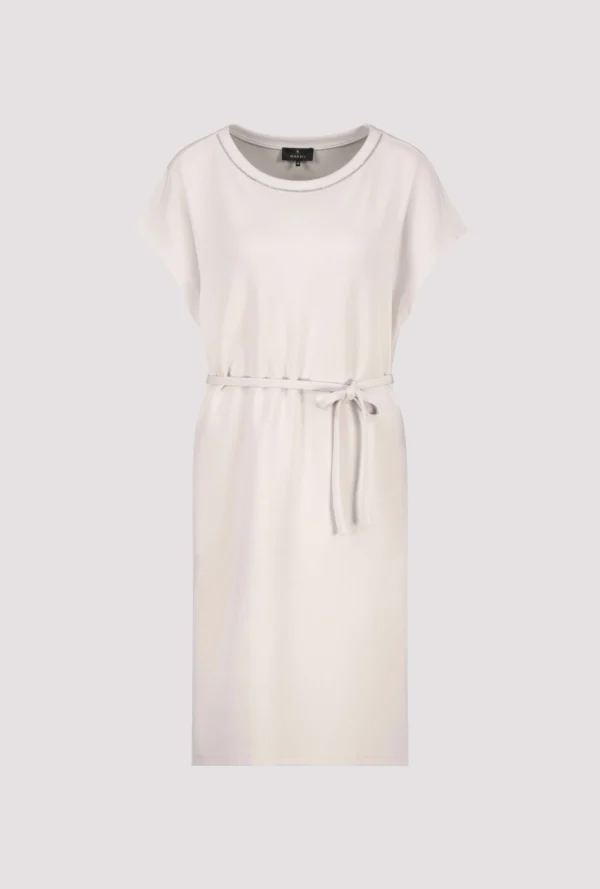 Tyto elegantní šaty zdobí třpytivý řetízek v kulatém výstřihu. Zavazovací stuha v pase vytváří ženskou siluetu.